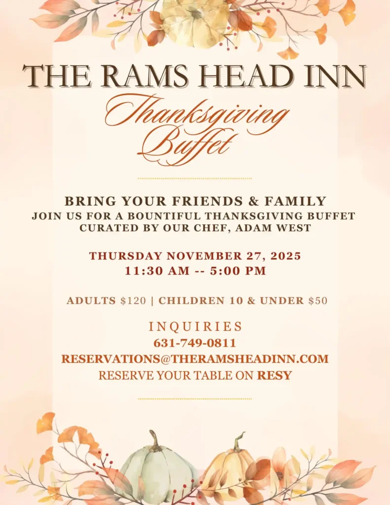 For inquiries, call 631-749-0811 or email reservations@theramsheadinn.com